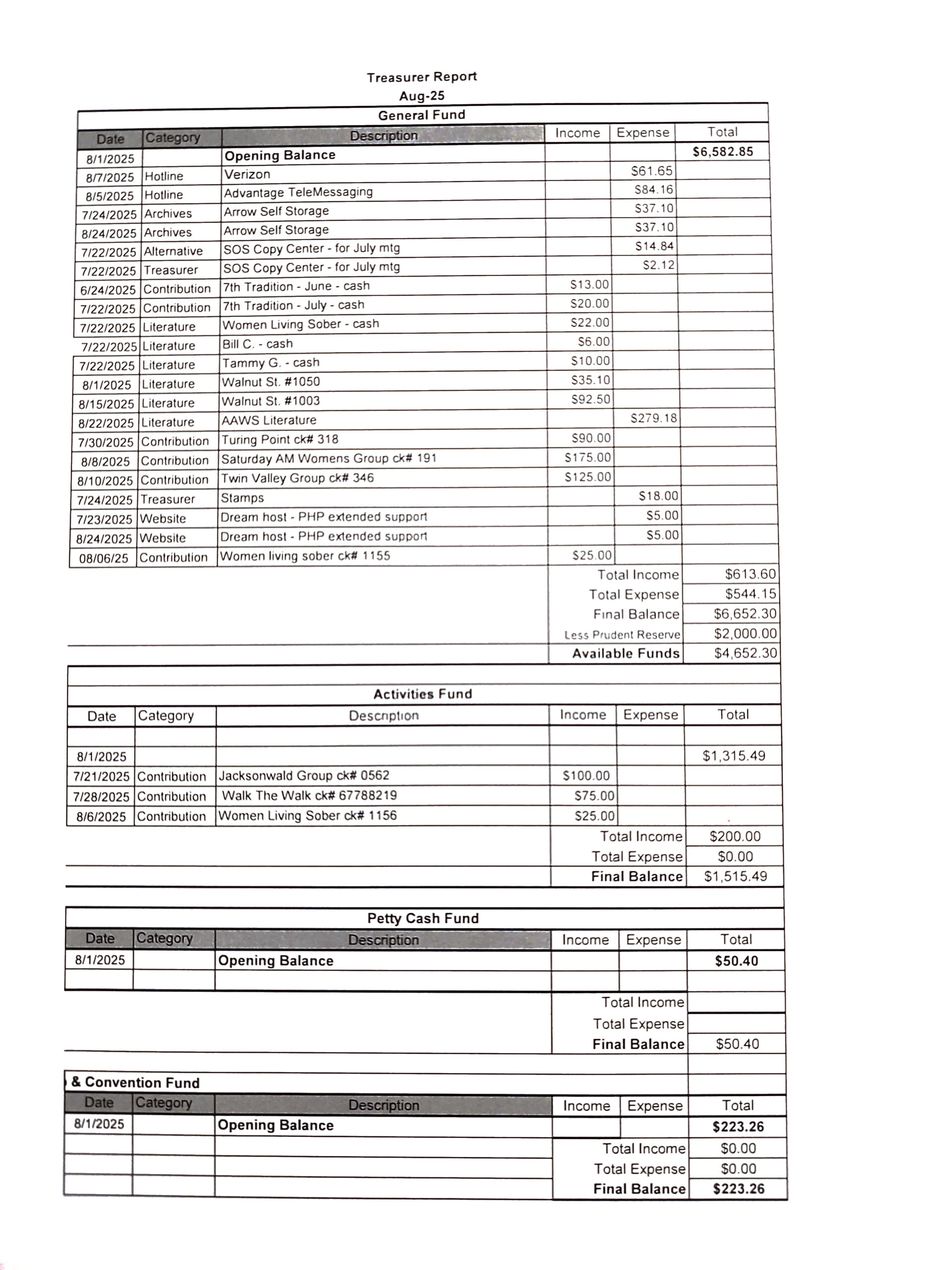 Reading-Berks Intergroup monthly meeting minutes and treasurer reports can be found here. Meeting minutes and treasury reports will be updated following the monthly Intergroup meeting as soon as possible.